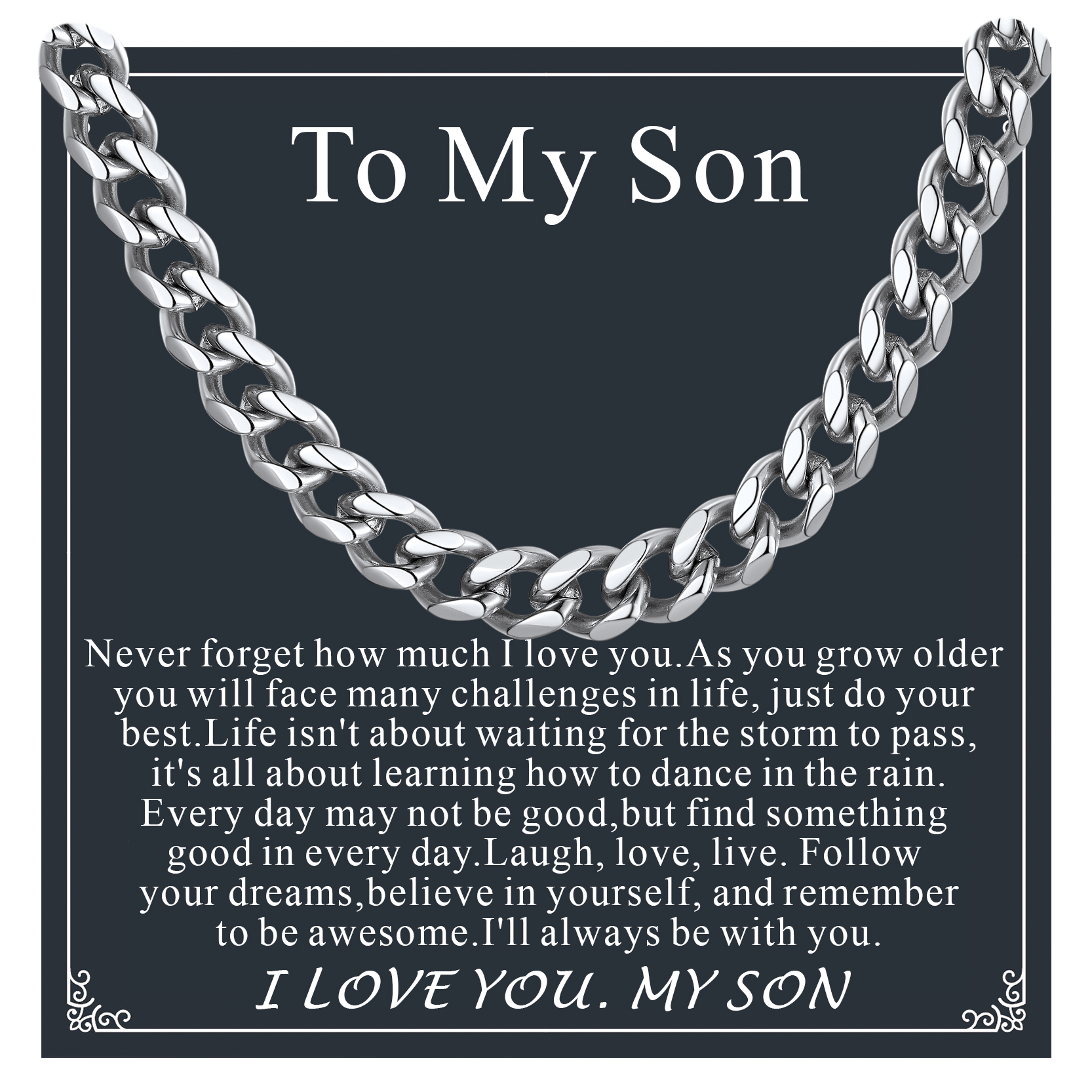 FaithHeart Cuban Link Chain Necklace for Men Stainless Steel Silver Jewelry Gift with Card To My Son Birthday Christmas Graduation 6mm 20"