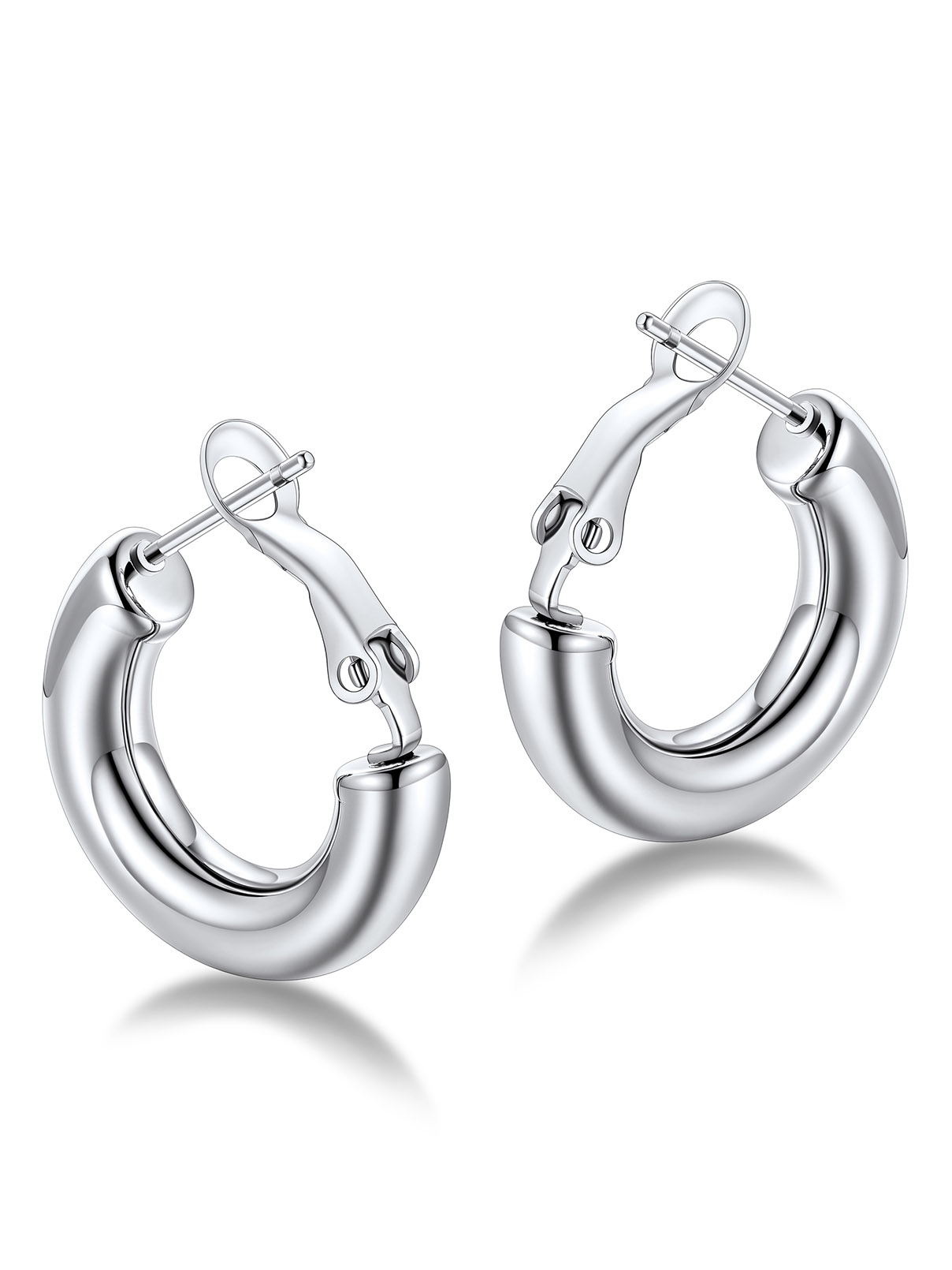 FaithHeart Chunky Huggie Hoop Earrings for Women Silver Stainless Steel 5mm Thick Hollow Tube Hoops Hypoallergenic Lightweight Earring Jewelry Gifts for Daughter Birthday 20mm