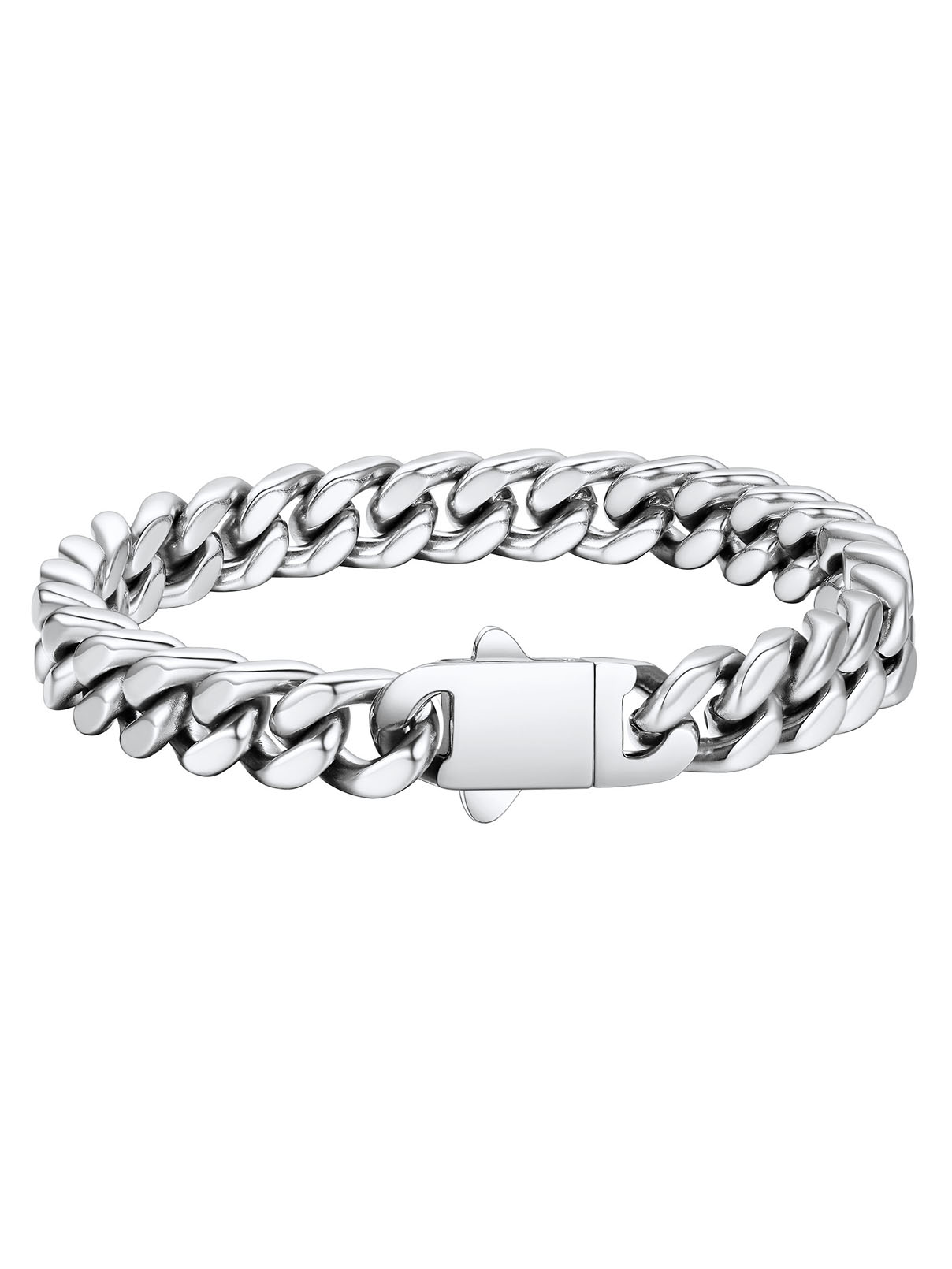 FaithHeart Cuban Link Chain Bracelets for Men, Stainless Steel Chain Wrist Bracelets Hip Hop Jewelry Gifts for Son Dad Father's Day Birthday 7MM Width