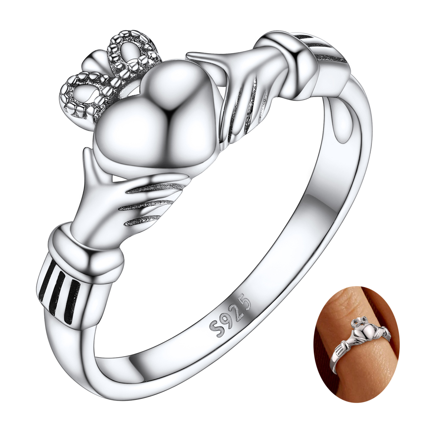 FaithHeart Irish Claddagh Ring for Women, 925 Sterling Silver Stackable Love Heart Celtic Knot Ring Crown Promise Engagement Wedding Band Jewelry Gift for Wife Anniversary Size 4
