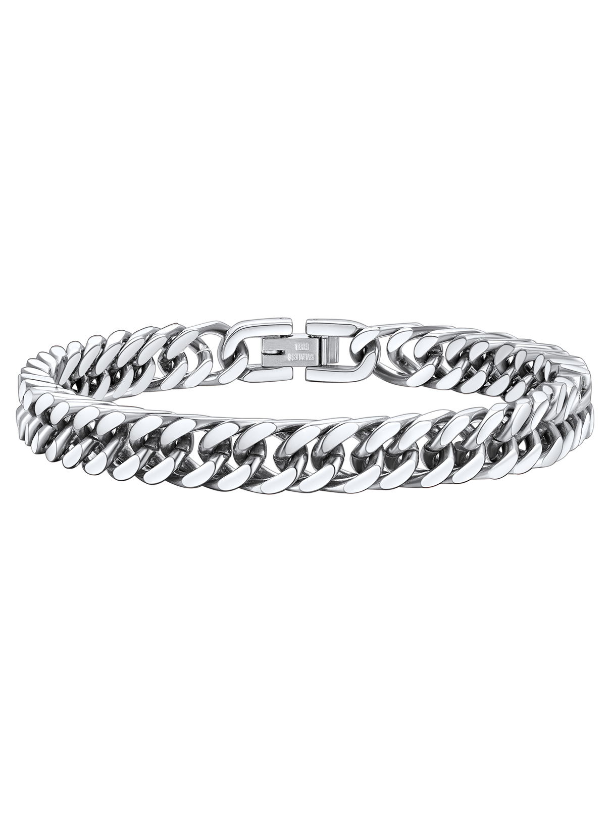 FaithHeart Cuban Curb Link Bracelets for Men Boys, Stainless Steel Chain Wrist Bracelets Hip Hop Jewelry Gifts for Dad Father's Day Christmas 8MM Width