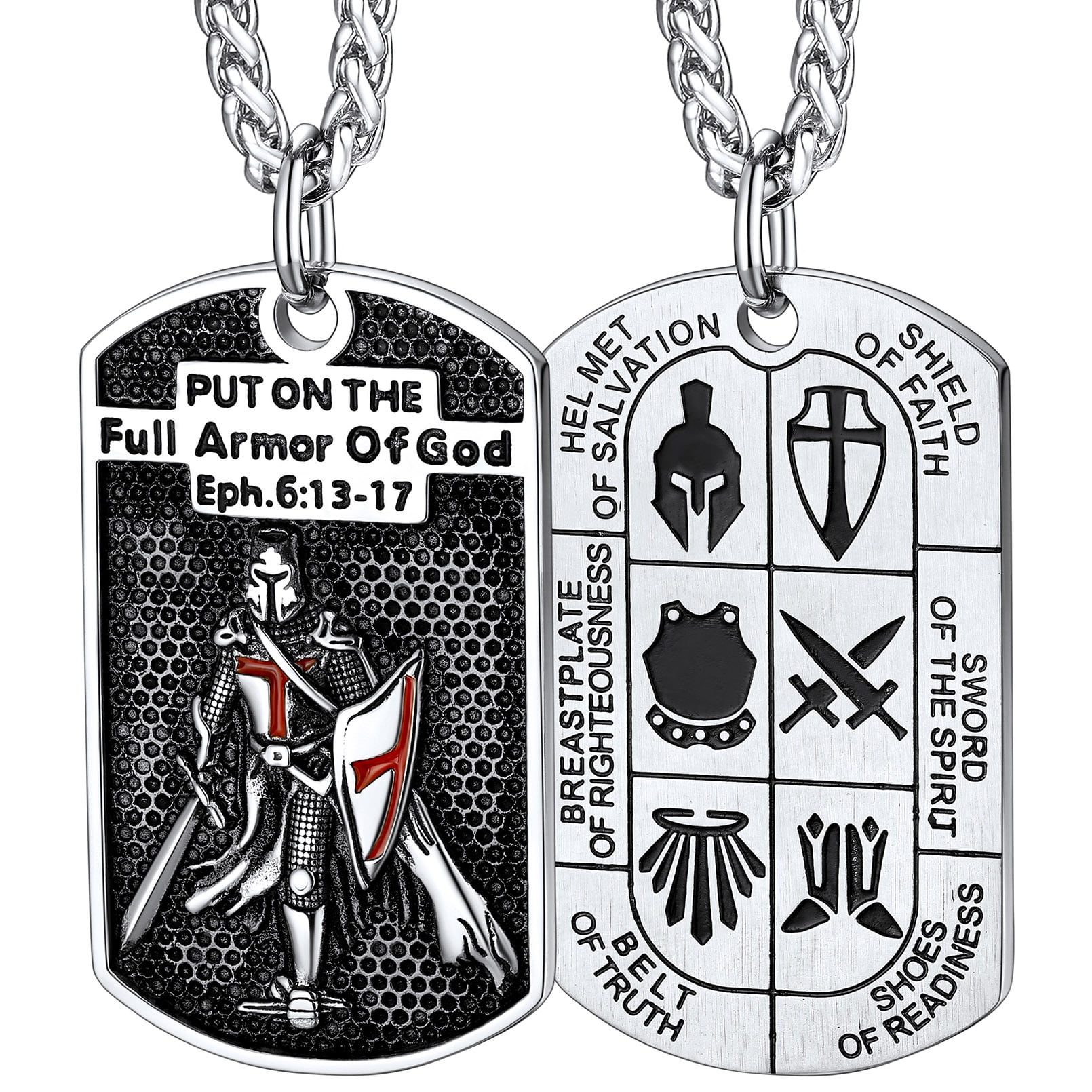 FaithHeart Knights Templar Seal Necklace for Men Stainless Steel Dog Tag Pendant Christ Fellow-Soldiers Jewelry
