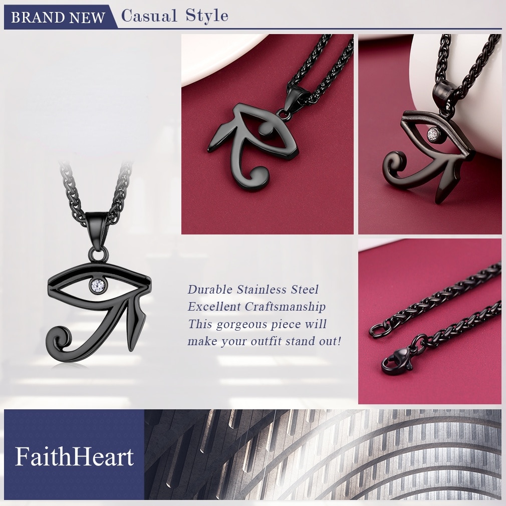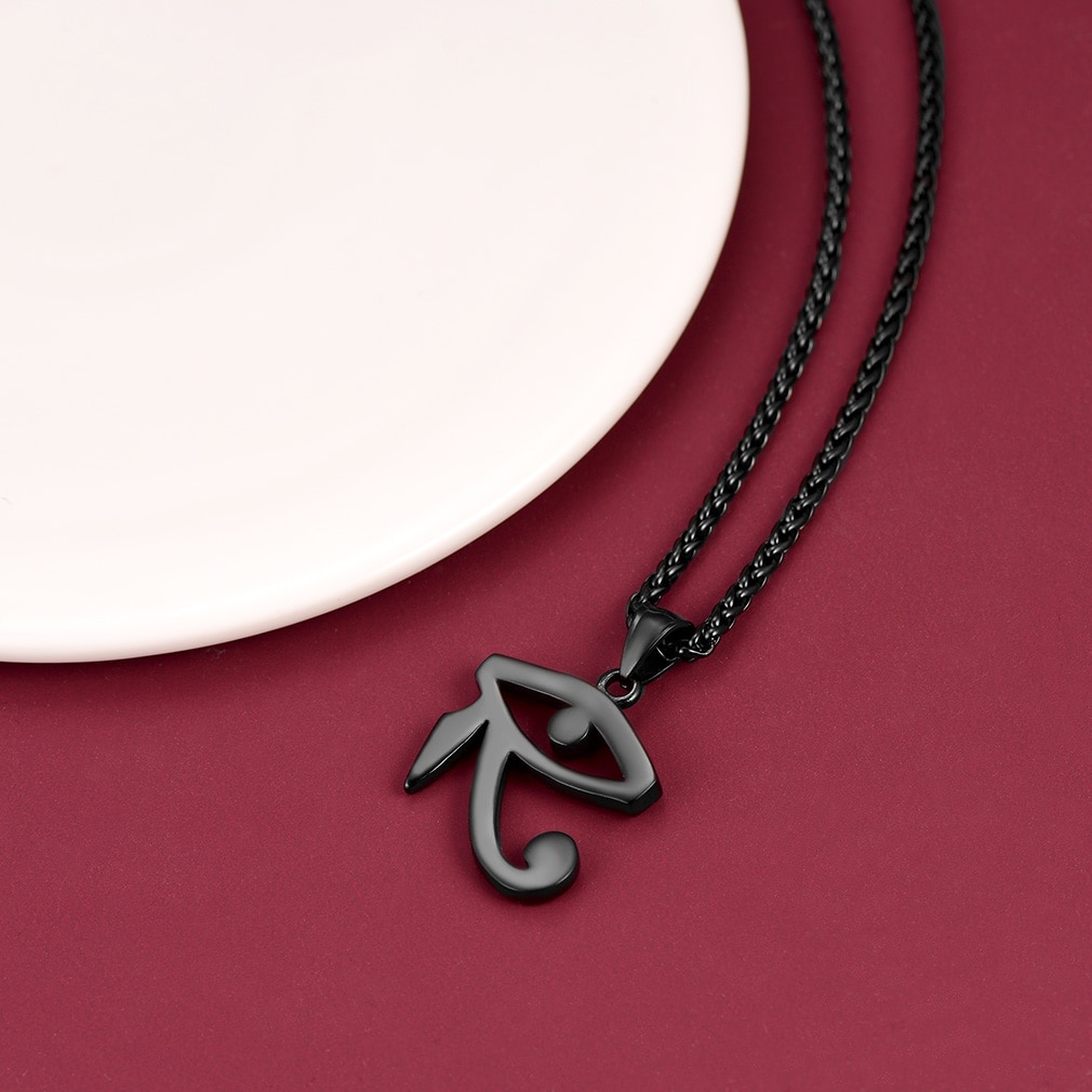 - Stunning Wedjat Eye: Pendant Length: 3.7 cm, Pendant Width: 2.6 cm. Chain Length: 50+5 cm(20+2 inches)/Resizable. Net weight: 23g. Freely adjust the length according to your neck and clothes.