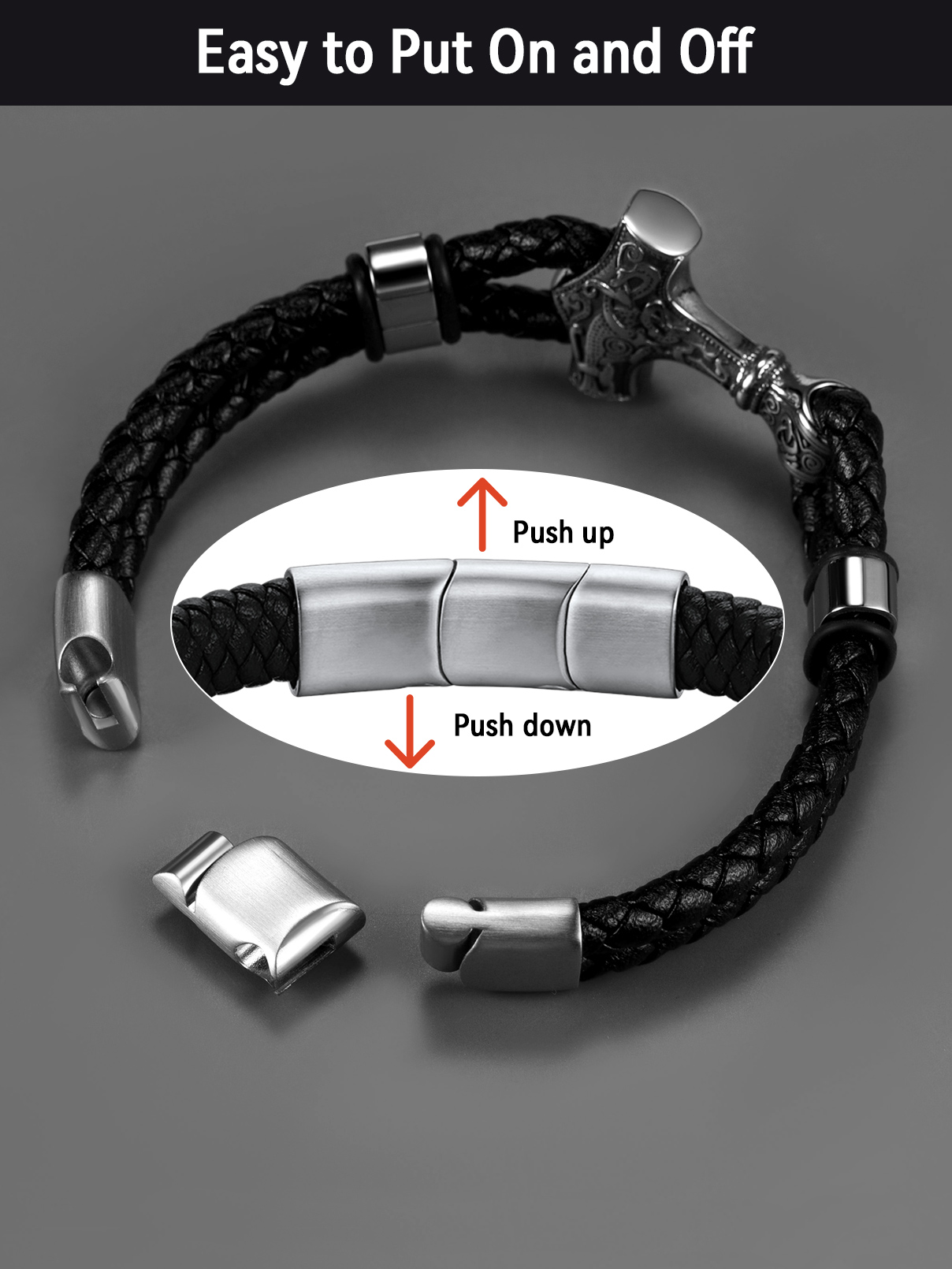 These bracelets make meaningful gifts for boyfriend, husband, father, son, grandson, brother, or friends. Ideal for birthdays, Christmas, Valentine’s Day, and Father’s Day, they complement Viking jewelry, gothic punk cuffs, and charm bracelet collections.