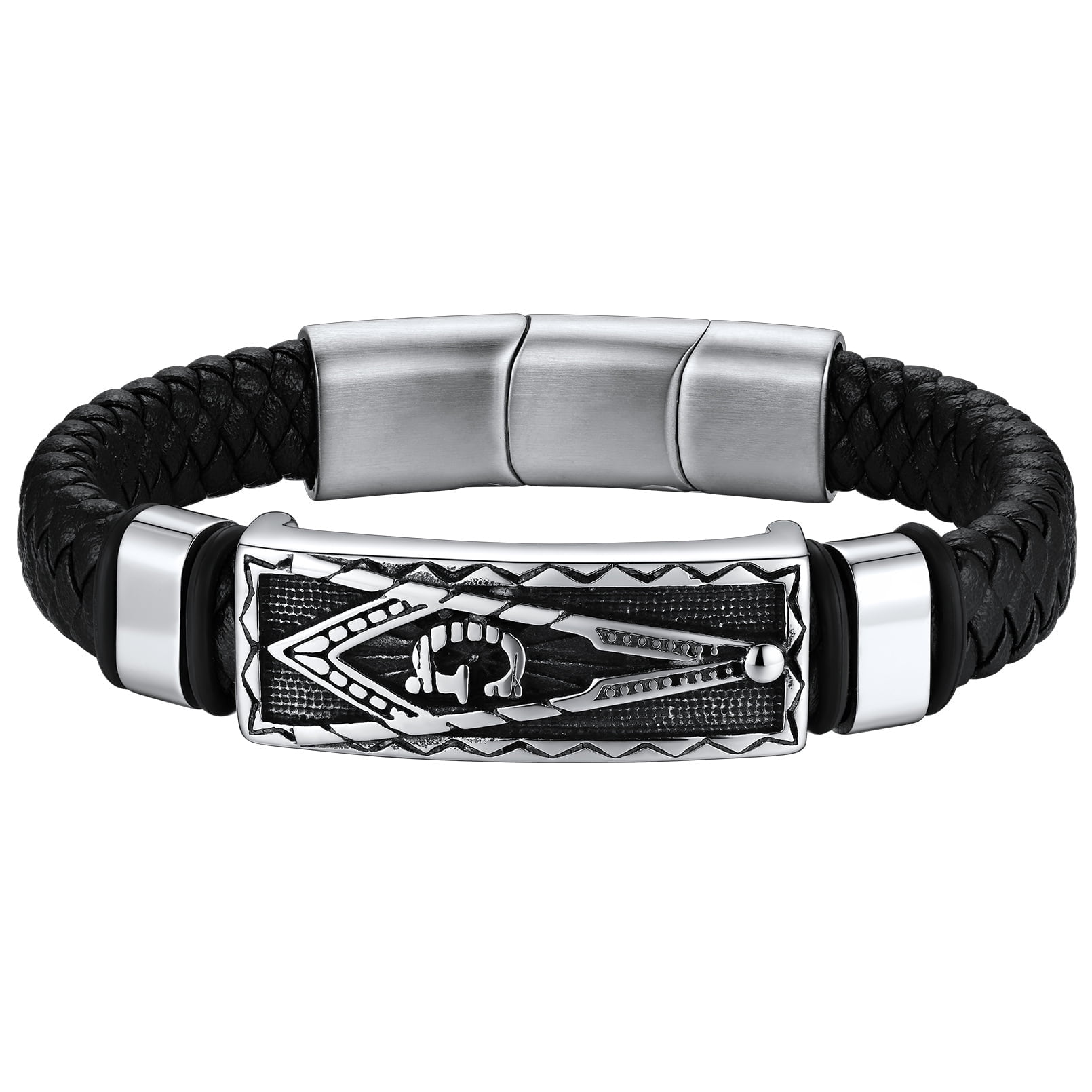 FaithHeart men's leather bracelets bring together iconic symbols and high-quality craftsmanship. Featuring designs like Thor’s Hammer Mjollnir, Skull Head, Masonic Freemason emblems, and simple ID bar styles, these bracelets suit a variety of personal tastes.