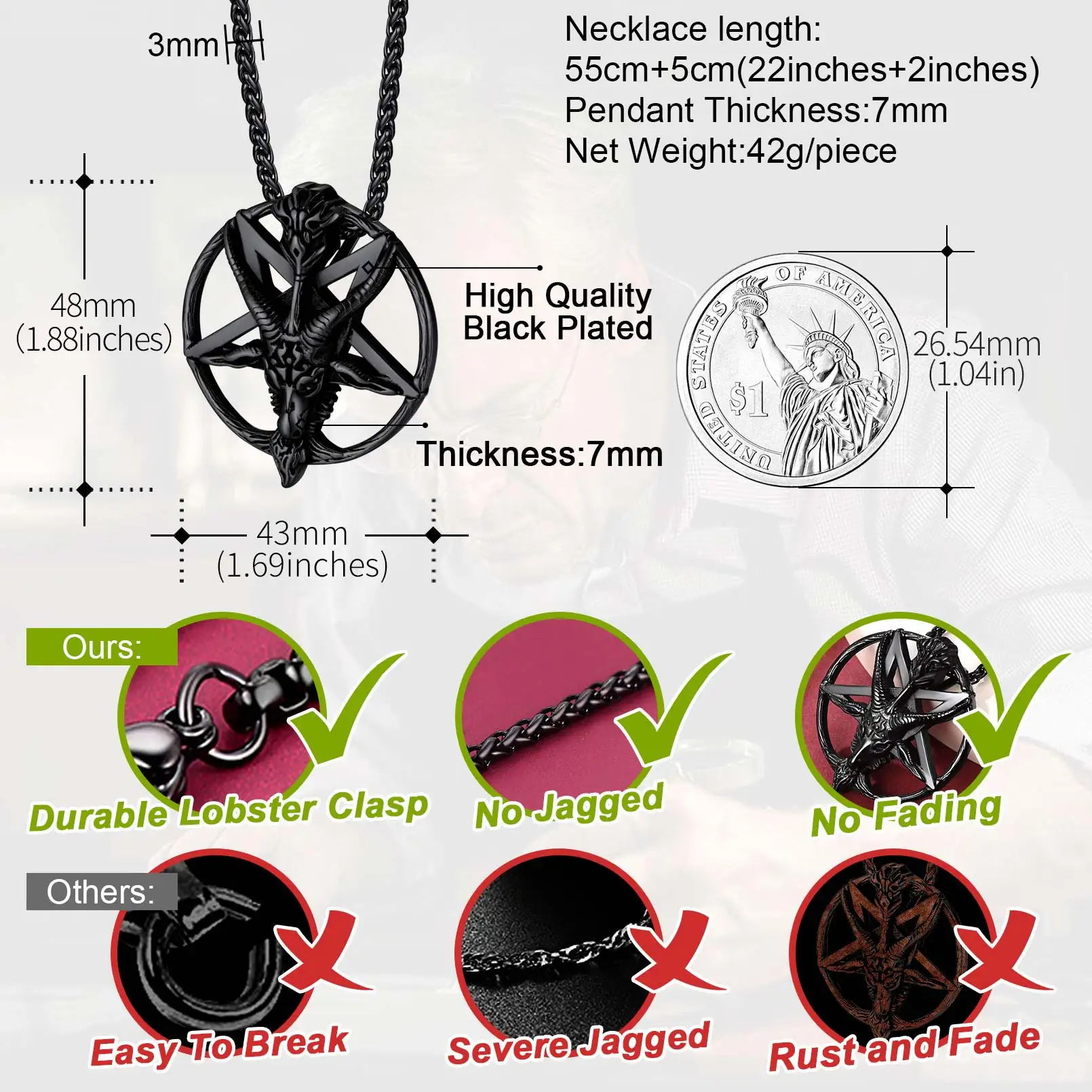 Pendant Size:1.9*1.7 Inches. Come with a wheat chain 24 Inches(60cm). High polished smooth and delicate surface not scratch the skin,go well with other jewelry.