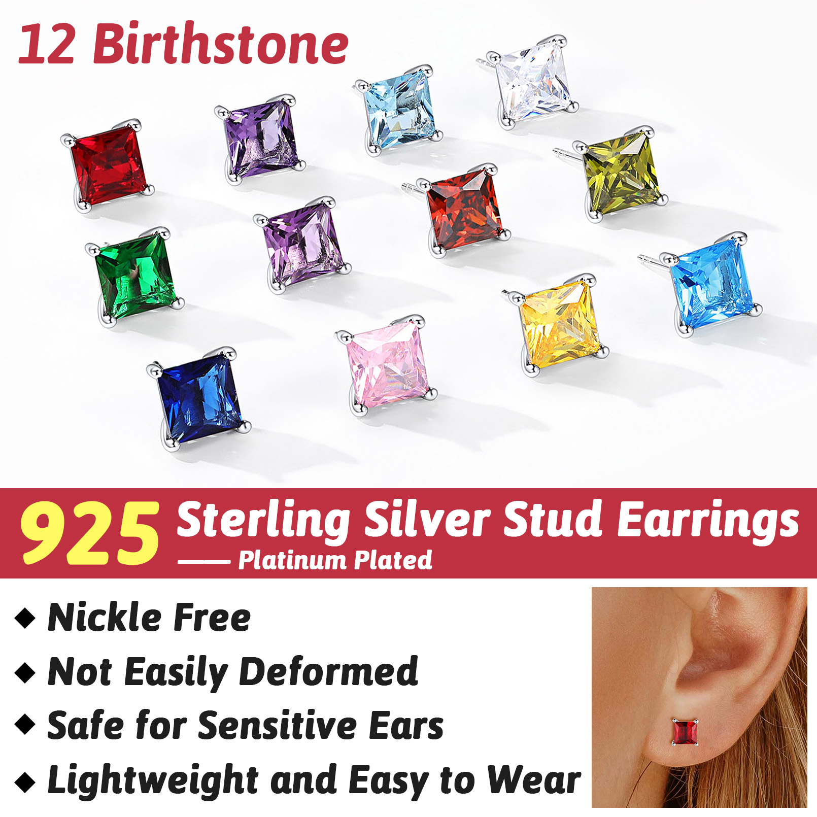 FaithHeart 925 Sterling Silver birthstone earrings for women, girls - a pair of stunning and unique stud earrings that are perfect for any occasion. With their simple design and superior quality craftsmanship, these classic and fashion earrings are sure to turn heads and spark conversations.
