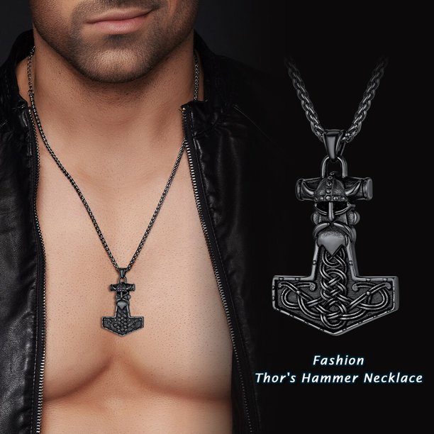 FaithHeart Thors Hammer Celtic Pendant Necklace Nordic Viking Jewelry Silver