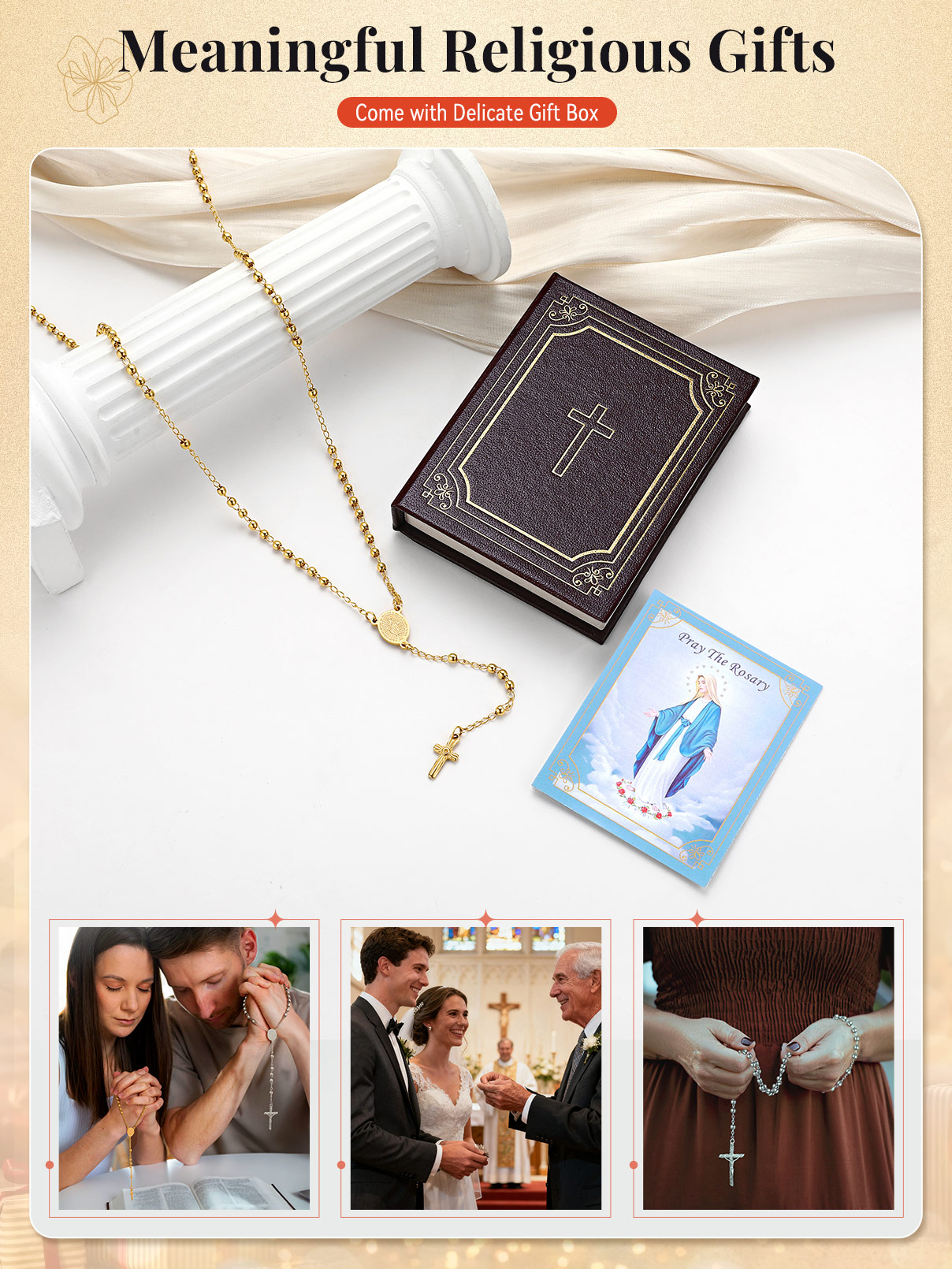 ❤ Expertly crafted from durable stainless steel, this dainty holy blessed beaded necklace features a complete rosary with a Virgin Mary centerpiece and a graceful crucifix cross pendant. Its tarnish-resistant and waterproof construction ensures long-lasting beauty, perfect for daily devotion.
